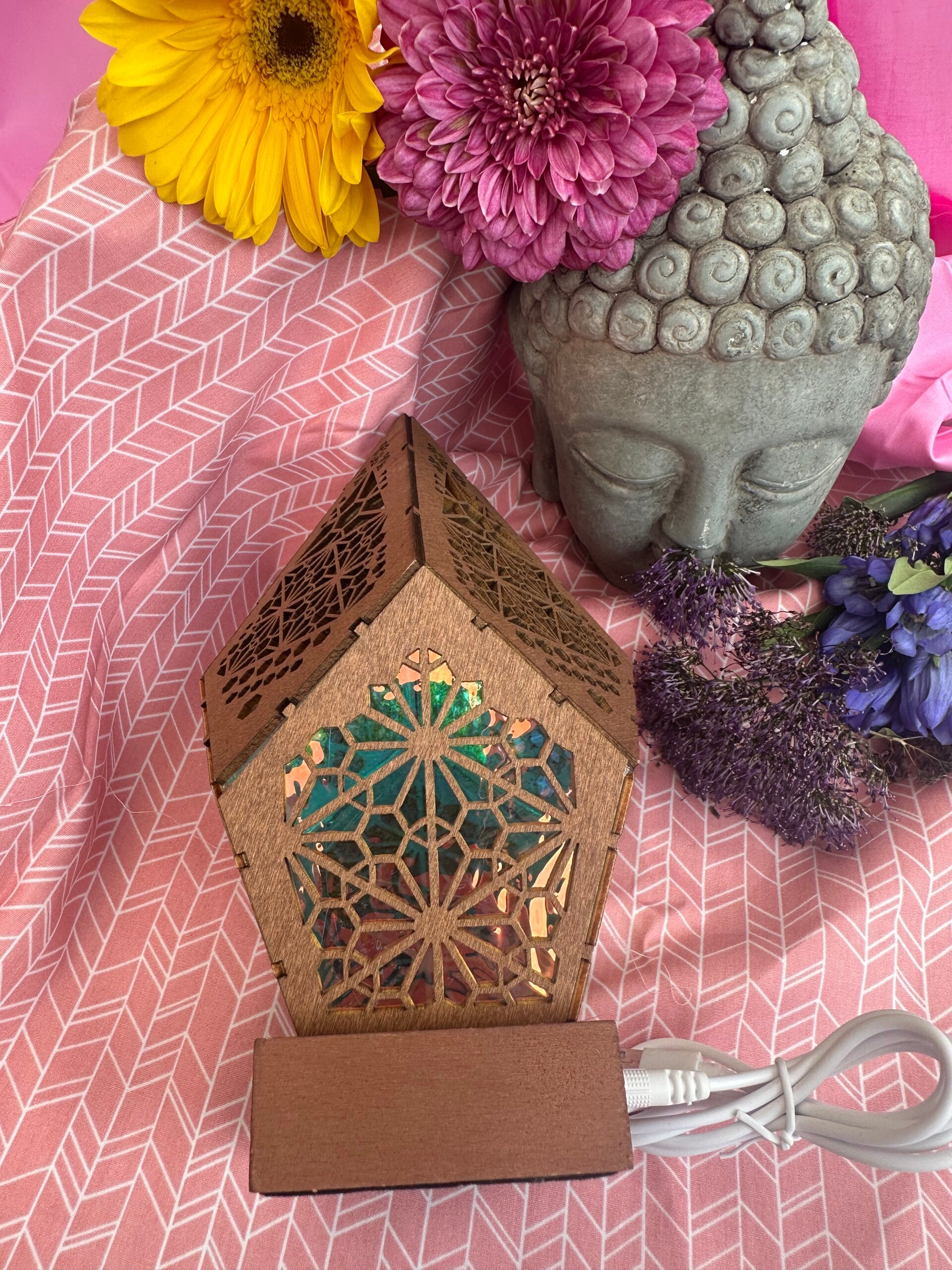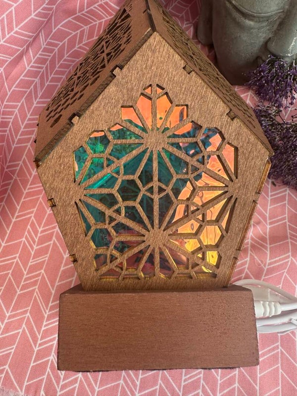Deze boheemse lamp heeft een usb kabel erbij zitten. Met de usb kabel geeft hij een mooie sterrenhemel.