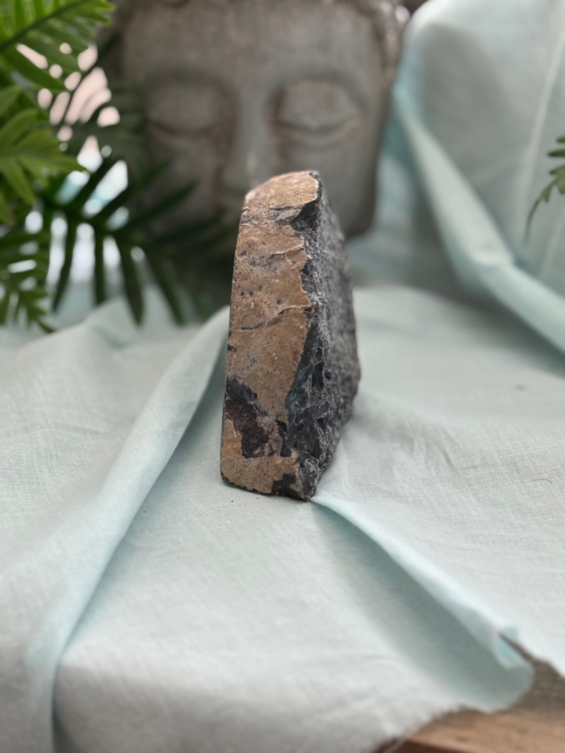 Het gepolijste oppervlak brengt de prachtige patronen en kleuren van de steen naar voren en maakt het een stijlvol decoratief object met sterke energetische werking.