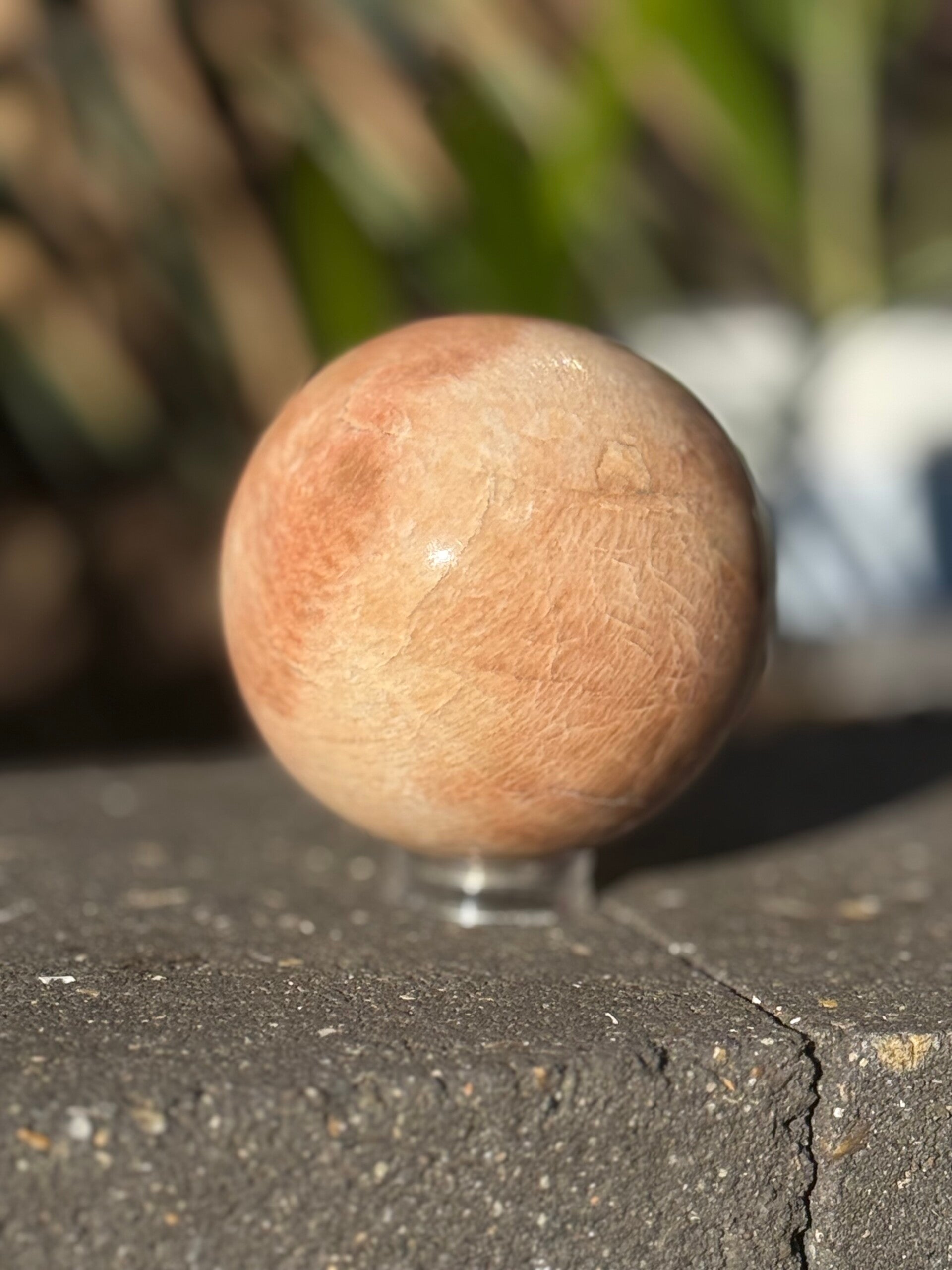 Een schitterende zonnesteen bol met een warme, stralende glans. Zonnesteen staat bekend als de steen van vreugde, vitaliteit en optimisme. Hij straalt licht en warmte uit en helpt je om meer zelfvertrouwen en levensvreugde te ervaren.