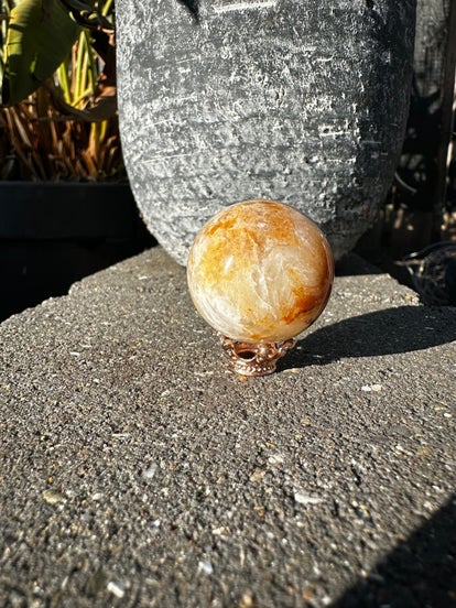 Een schitterende gouden calciet bol met warme, zonnige tinten. Deze steen staat bekend als een krachtige bron van positieve energie, motivatie en zelfvertrouwen.